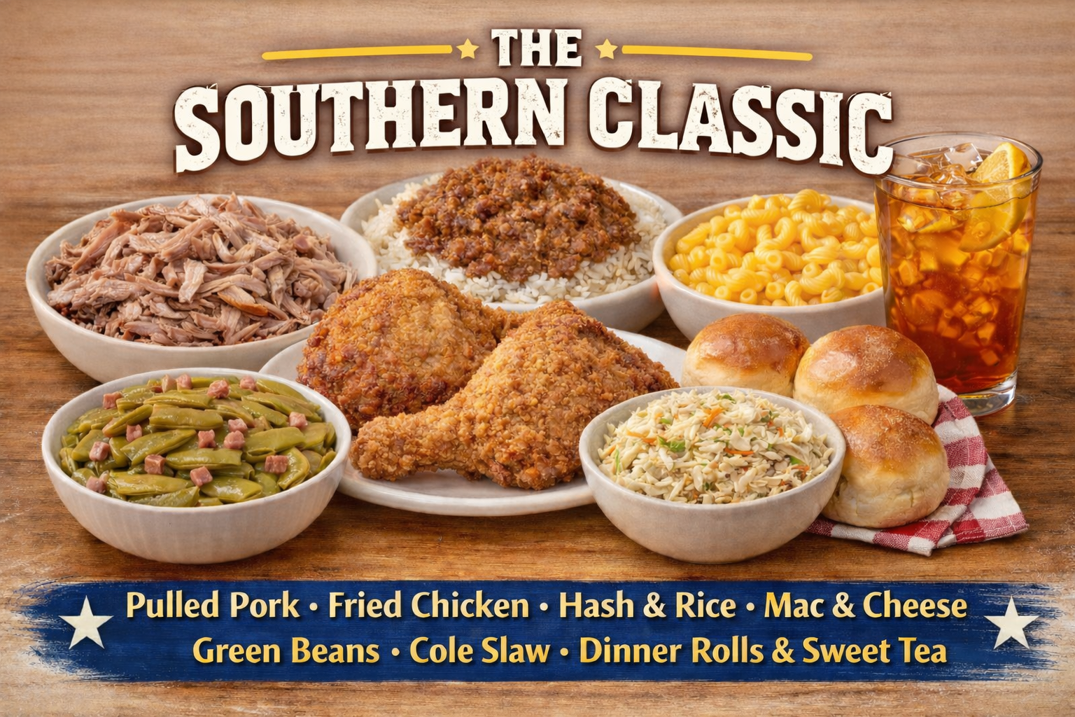 Several of our most requested Southern comfort food favorites, all in one meal!